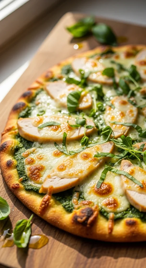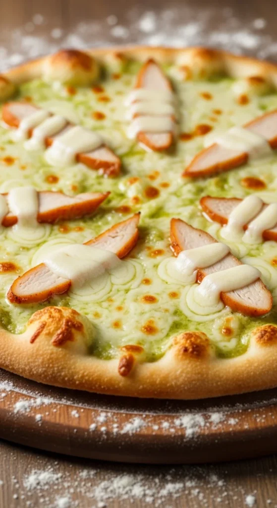 3. Green Alfredo Chicken Pizza