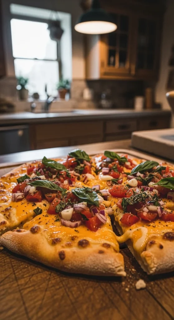 Let the pizza rest for one minute before slicing so the sauce settles. Serve with a simple green salad or roasted vegetables so the meal doesn’t feel too heavy.