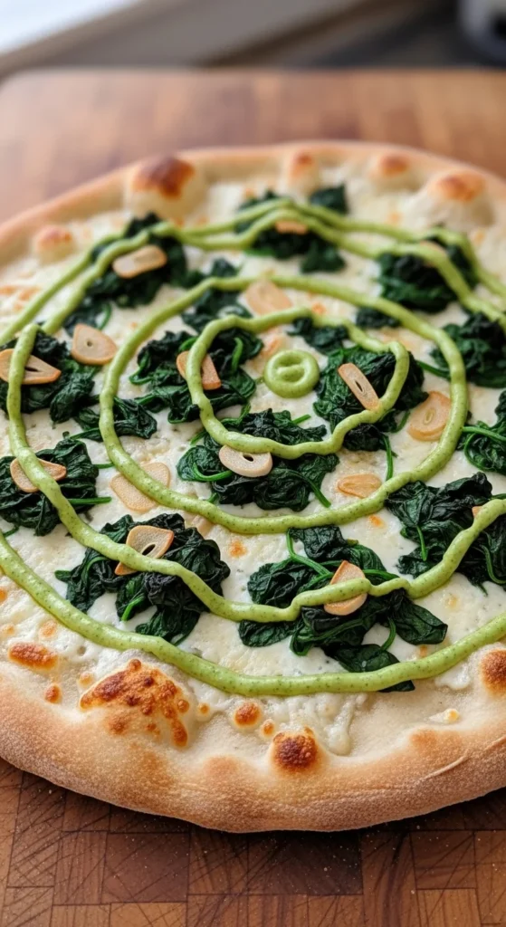 Slice and serve warm. This pizza is best eaten fresh while the pesto still tastes bright. If you’re serving several pizzas, place this one between heavier options so it feels like a break rather than a side.