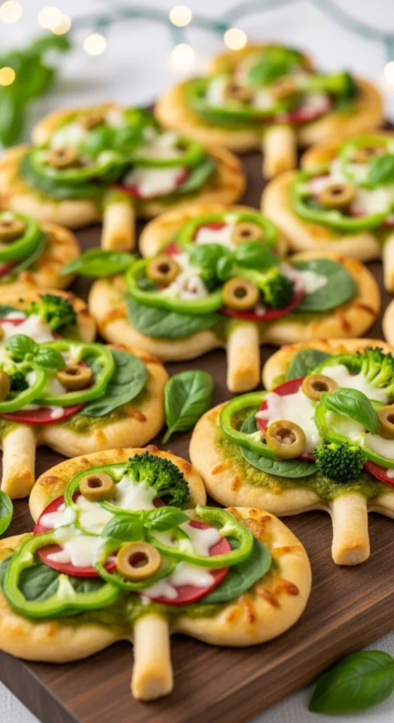 This pizza works because it looks festive without changing what people expect from a cheese pizza. The green dough makes the shape stand out, but once you bite into it, it still tastes like classic pizza. It’s the safest option if you’re cooking for a mix of kids and adults.