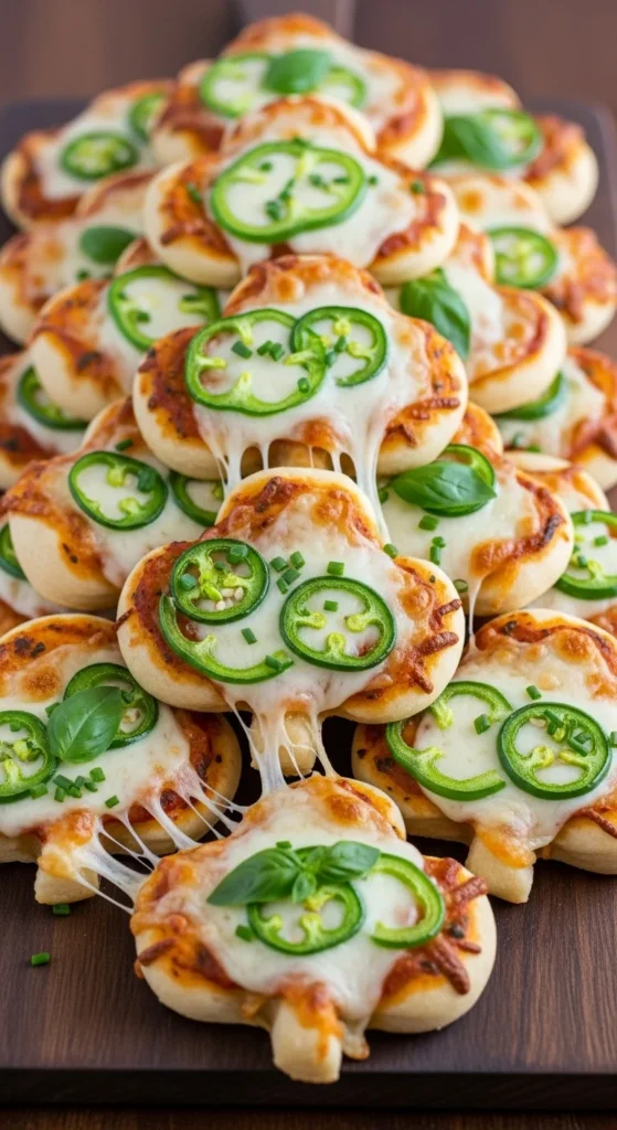 These pizza bites are made for movement. People can grab one, eat it in a couple of bites, and keep talking. Keeping them small also helps them bake evenly and hold together without sliding toppings.