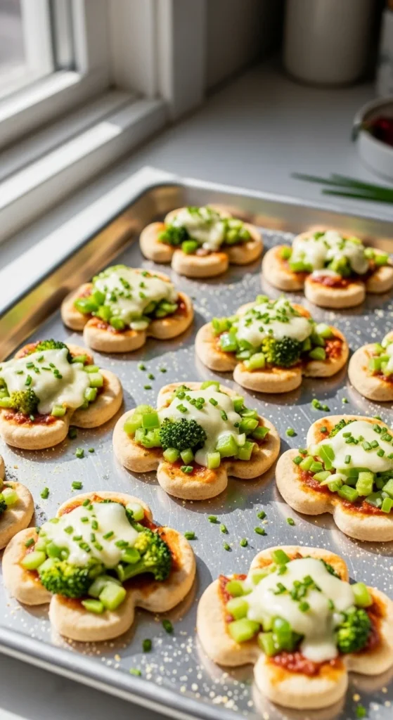 These mini pita pizzas are made for parties where people want to grab food without plates. Using pita keeps things fast and crisp, and the shamrock shape makes them feel festive without changing the flavor too much. They’re especially good when you need something that bakes quickly and disappears just as fast.