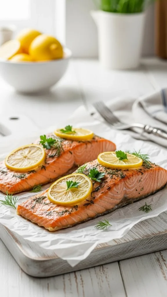 This recipe works when you want dinner to feel complete without being complicated. Salmon cooks quickly, and lemon keeps the flavor light and fresh without sauces.