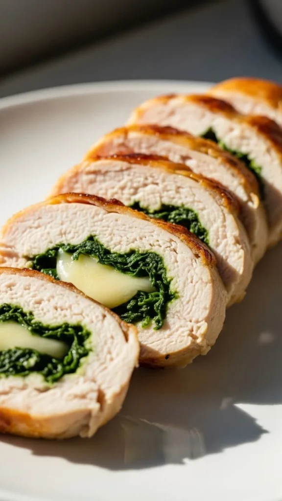This dish looks impressive but stays straightforward. The filling keeps the chicken moist while adding flavor without sauces.