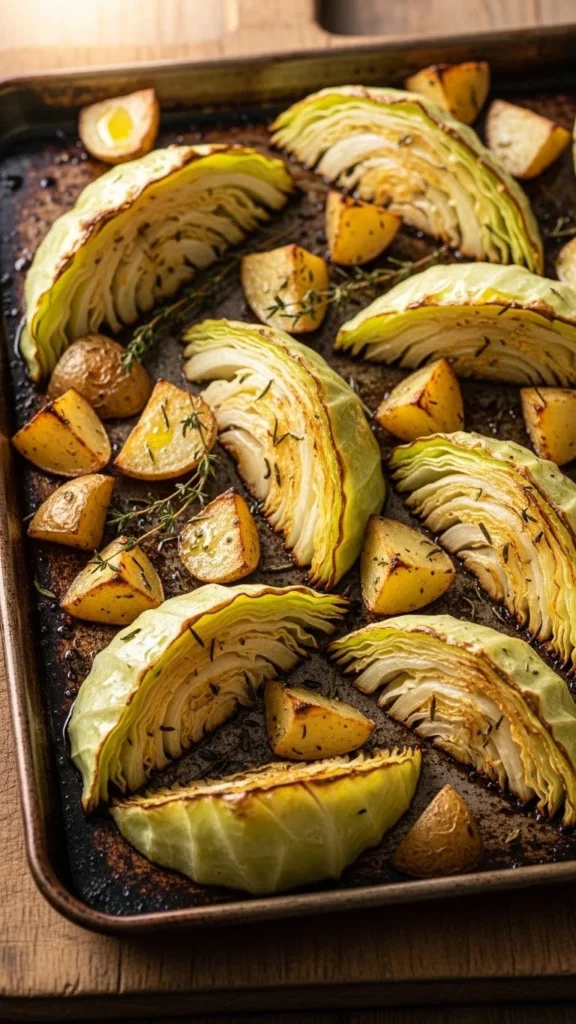 Cabbage holds up well in the oven and develops deep flavor when roasted properly. Cutting into thick slices keeps the center tender while the edges brown. This is simple, filling, and easy to scale.
