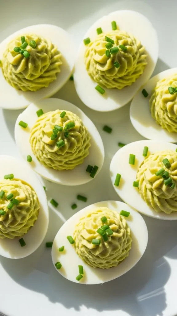 These deviled eggs keep the familiar structure but replace most of the mayonnaise with avocado. The filling stays rich and smooth while tasting fresher and less heavy. They are easy to prepare ahead and hold well for gatherings.