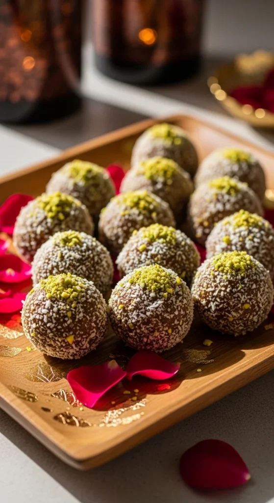 These are the sweets people reach for when they want something indulgent but not overly sugary. Dates bring natural sweetness while nuts add crunch and richness. They come together quickly and do not even need baking, which honestly feels like a blessing during busy Eid mornings.