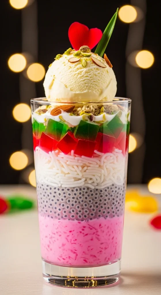 When meals feel heavy and everyone wants something refreshing, falooda saves the moment. Cold milk, rose syrup, soft vermicelli, and ice cream turn into a dessert that also feels like a drink. It looks colorful, tastes cooling, and instantly lifts the mood after spicy food.