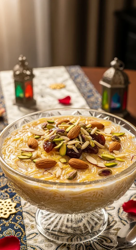 Serve warm in small bowls right after Eid prayer or chill it for later visits. Add extra nuts and a few soaked dates on top for a generous festive finish.