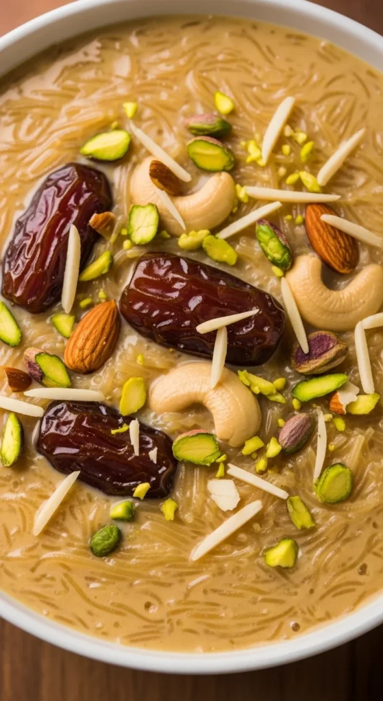 Serve warm on Eid morning or chilled later in the day. Garnish with extra nuts. Small bowls are traditional since they are rich.