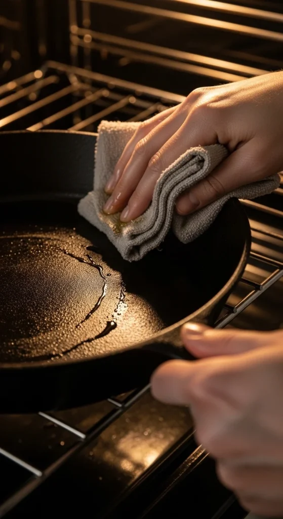 Seasoning is not simply oiling the pan. It is a heat-driven process where oil polymerizes and bonds to the iron surface, forming a durable coating that protects against rust while creating natural non-stick performance.