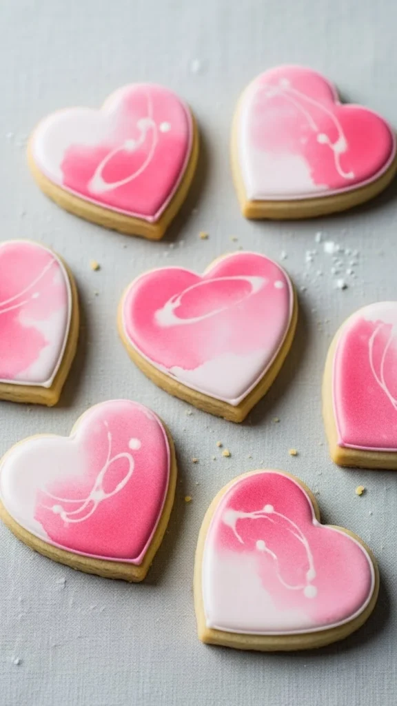 Watercolor icing is a trending Valentines Day sweet because it creates a soft, artistic finish that looks handcrafted rather than factory made. These cookies feel delicate, modern, and romantic, while still being simple enough for home baking.