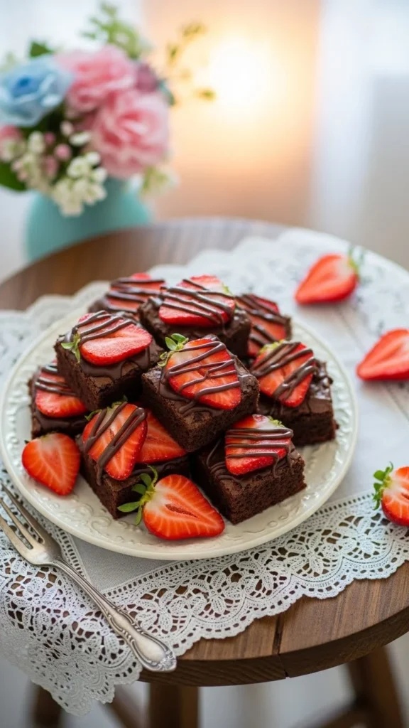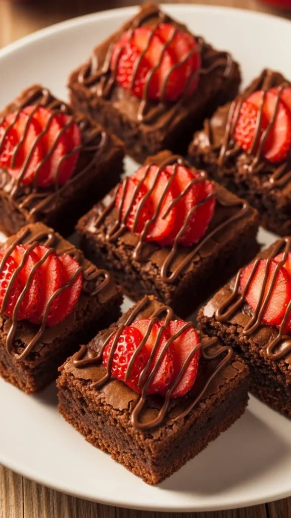 Chocolate and strawberry are one of the most recognizable Valentine pairings. These brownie bites keep the portion small while still feeling rich, romantic, and handmade.