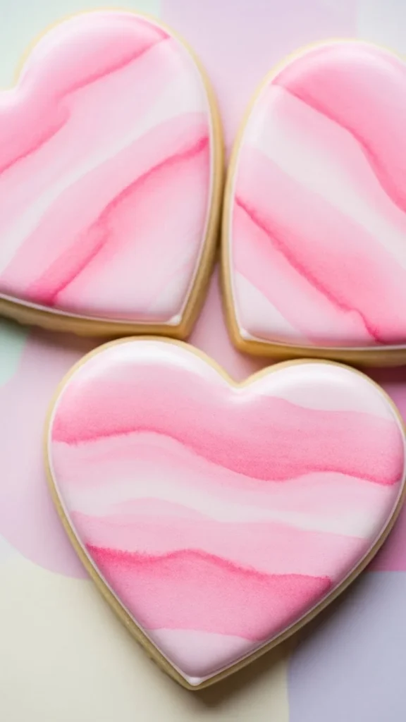 8. Pink Watercolor Heart Sugar Cookies