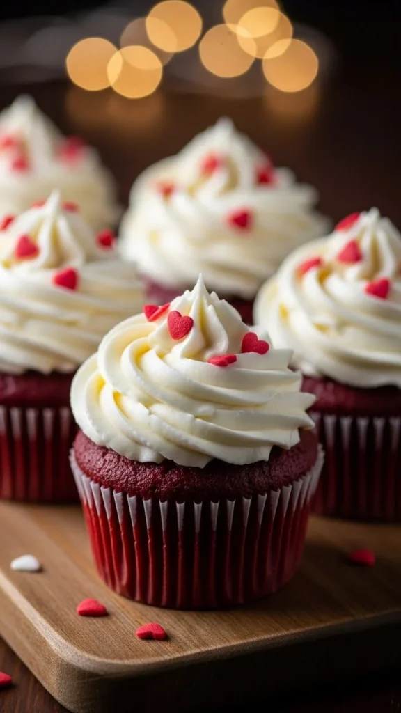 Red velvet cupcakes remain one of the most loved Valentine bakes. The bright red crumb paired with soft cream cheese frosting creates a romantic look and a balanced flavor that feels classic and familiar.