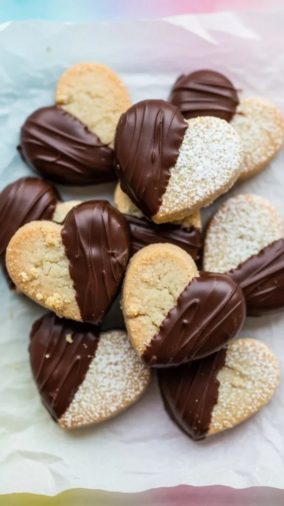 Shortbread cookies have a delicate buttery crumb that pairs beautifully with chocolate. Dipping only one side keeps the look polished and elegant. You can shape them into hearts for Valentine’s.