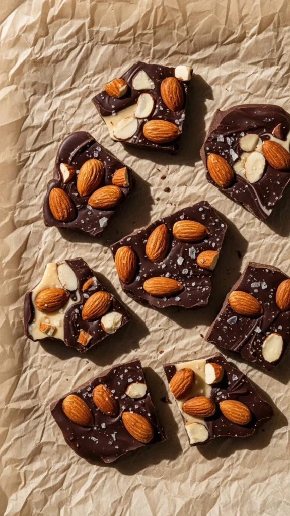 Chocolate bark is thin, crisp, and easy to customize. Almonds add crunch and a slight roasted taste that balances the chocolate. Sea salt gives a modern touch.