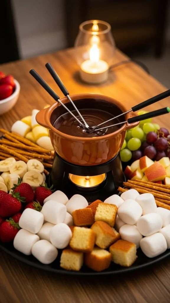 Serve immediately so the chocolate stays smooth. Arrange dipping foods neatly around the pot. Small forks help keep things tidy. This works well for relaxed evenings.
