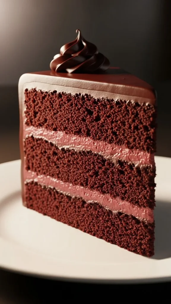 Red wine adds depth and warmth to the chocolate, creating a slightly fruity note that feels grown up and refined. The cake remains soft and moist with a velvety crumb. It is ideal for evening dining.