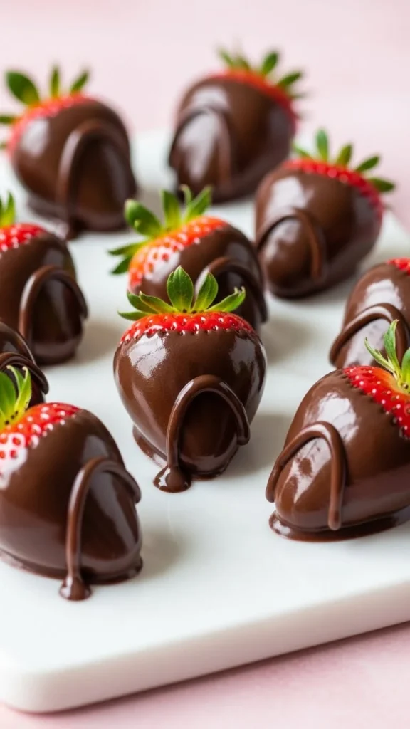 This is one of the most iconic Valentine’s desserts thanks to the mix of fresh fruit and smooth chocolate coating. The contrast between juicy sweetness and rich chocolate makes each bite feel special. They are simple to prepare but always impressive.