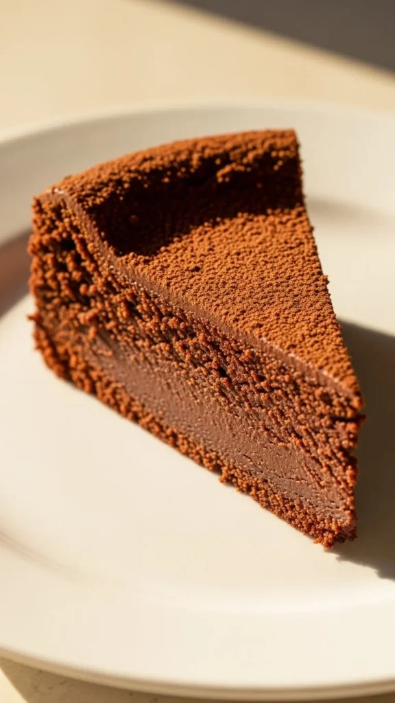 Flourless chocolate cake is naturally gluten free and extremely rich, with a texture somewhere between cake and truffle. The flavor leans deep and intense, making this perfect for dark chocolate lovers. A small slice goes a long way.