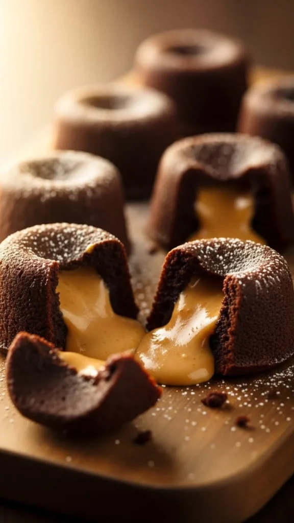 Serve immediately so the center flows when opened. A scoop of vanilla ice cream keeps the sweetness balanced. Add a dusting of cocoa or powdered sugar for contrast.