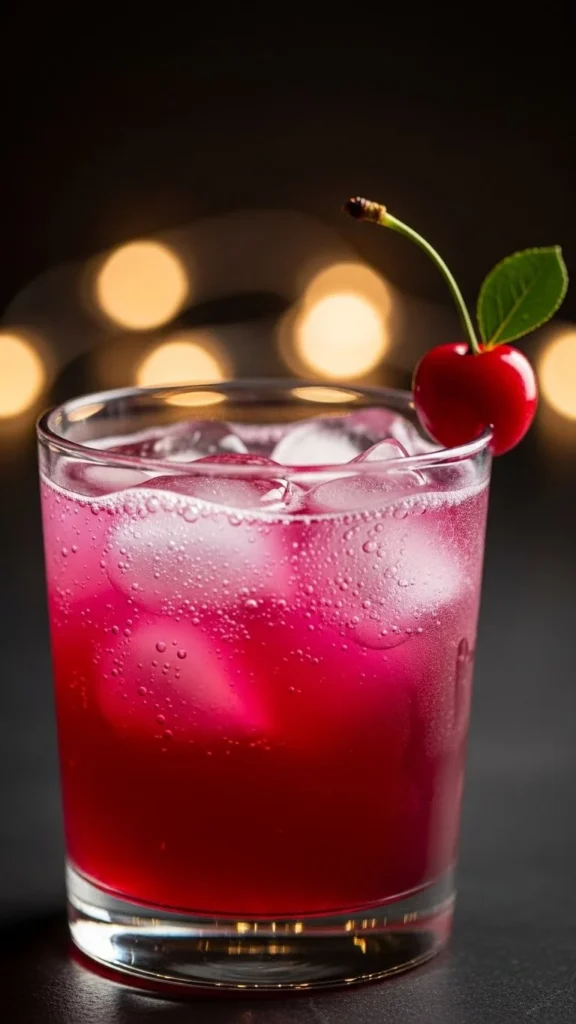 This evening style mocktail blends sweet cherry flavor with smooth vanilla to create a cozy and romantic drink. The deep pink color makes it perfect for Valentine celebrations at home.