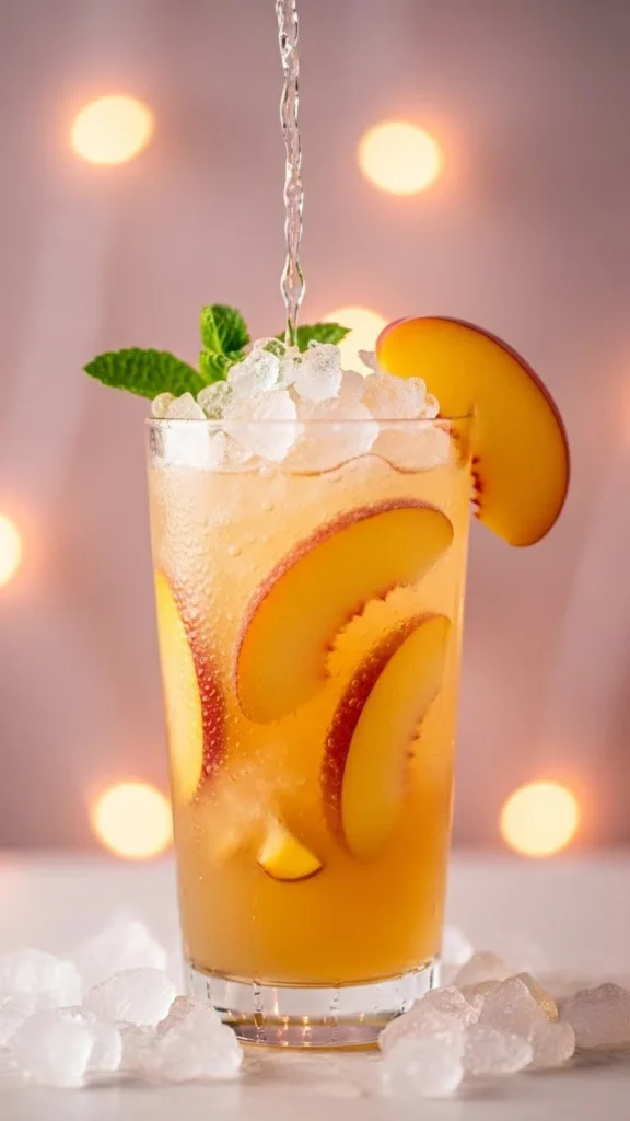 Serve chilled with thin peach slices to highlight the natural fruit flavor.