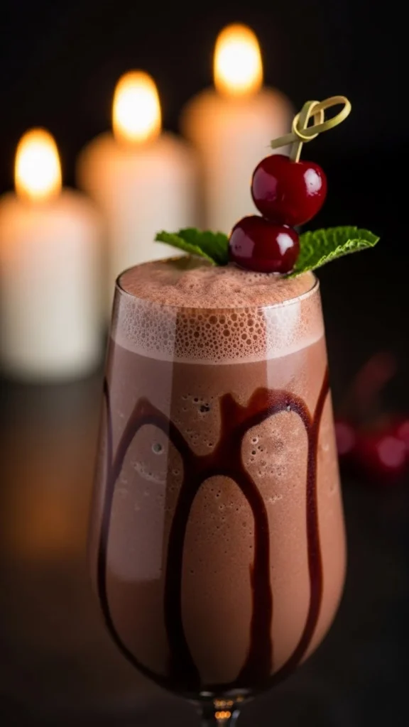 This dessert style mocktail blends cherry juice with chocolate syrup to create a sweet and indulgent Valentine drink. It works well for evening celebrations or after dinner treats.
