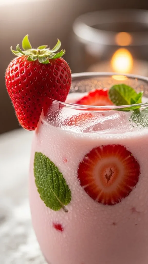 This creamy strawberry mocktail feels smooth, sweet, and comforting. It is perfect for couples who enjoy dessert style drinks that still feel light and refreshing.