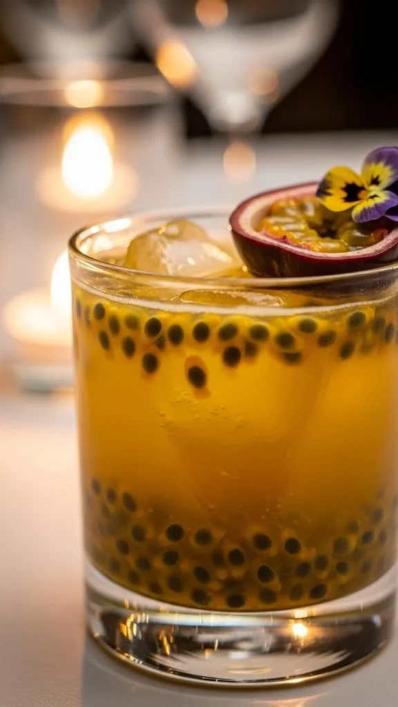 This tropical inspired mocktail combines the tangy taste of passion fruit with refreshing fizz. It feels bright, playful, and perfect for a fun and relaxed Valentine evening.