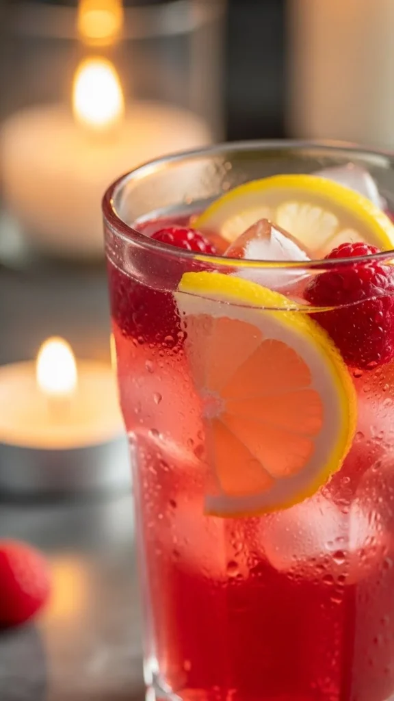 This mocktail blends raspberries with lemonade to create a sweet yet tangy drink that feels cheerful and romantic. The bright pink color makes it especially fitting for Valentine celebrations.