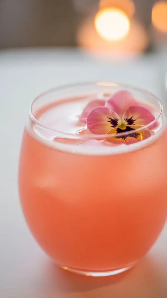This refreshing mocktail combines bright lemon with soft floral notes for a romantic yet energizing drink. The pale pink shade keeps the presentation delicate and charming.