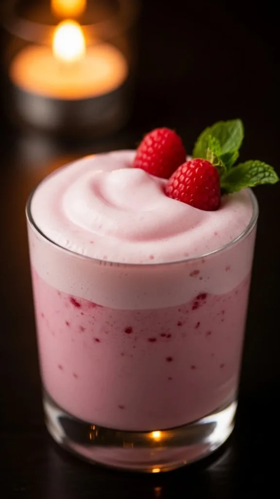 Serve in a dessert-style glass. A single raspberry garnish keeps the look elegant.