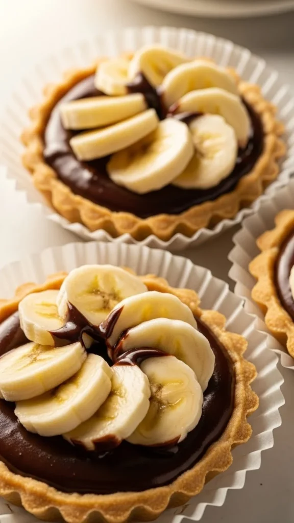 These tartlets combine creamy chocolate with soft banana slices. The flavors are warm and comforting. Their small size makes them perfect for sharing.