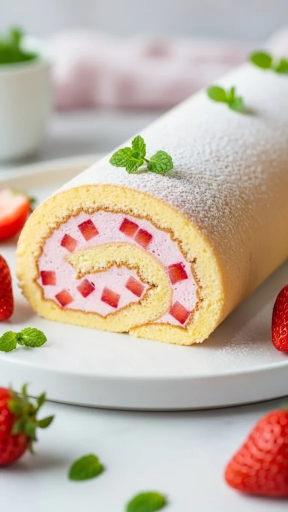 This cake is light, airy, and filled with creamy sweetness. The rolled shape makes it feel special. Perfect for Valentine’s Day.