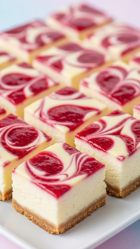 These bars are creamy, smooth, and lightly fruity. Easy to slice and share. Perfect for Valentine’s gatherings.
