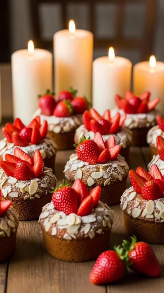 These cakes are soft, lightly sweet, and perfect in small portions. The almond flavor adds warmth. Ideal for Valentine’s dessert plates.
