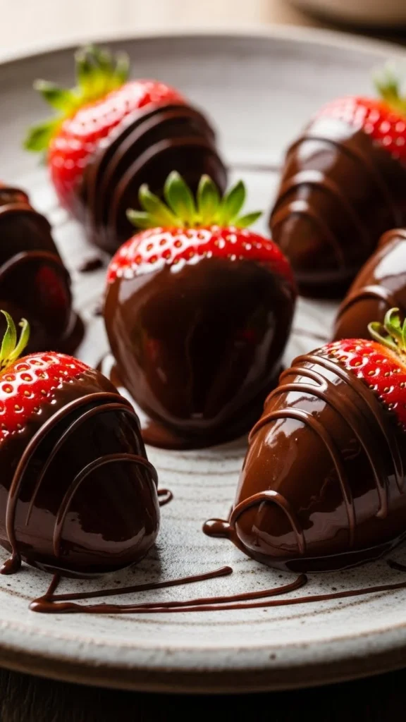 These strawberries are simple yet instantly romantic. The chocolate shell adds richness while the fruit keeps everything fresh. Perfect for sharing.