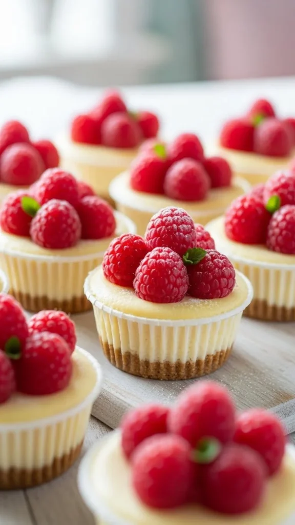 These cheesecake cups are creamy, smooth, and gently sweet. The raspberry topping adds a romantic pop of color and brightness. They’re elegant without being complicated.