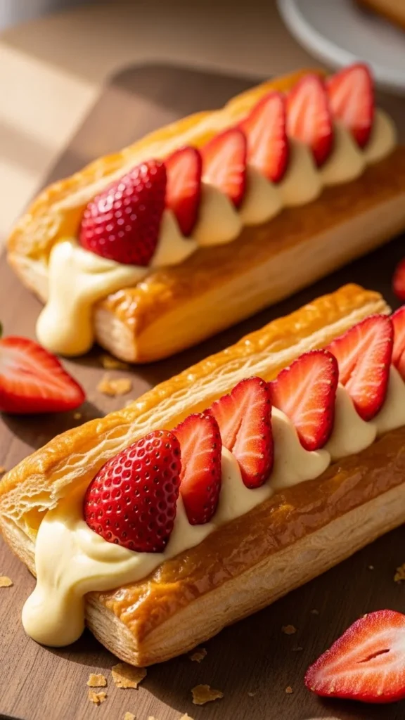 These pastries are light, airy, and filled with gentle sweetness. The strawberries add freshness and color. They look impressive but are simple to assemble.