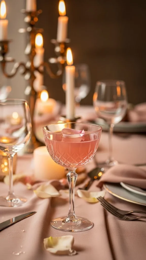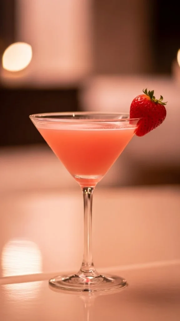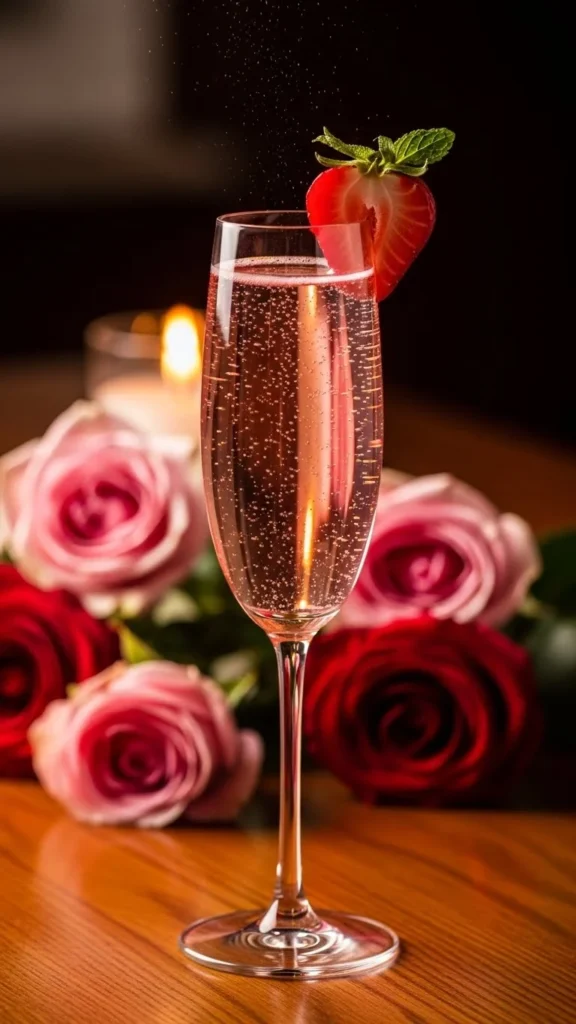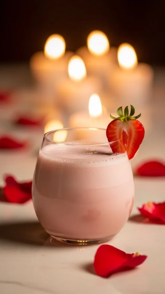 Serve with a fresh strawberry slice on the rim or cut into a heart shape for a romantic finish. The soft pink color instantly sets a sweet and loving mood for the evening.