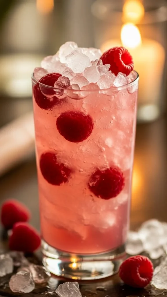 Serve with crushed ice for a frosty look and garnish with a fresh raspberry or mint leaf for color.