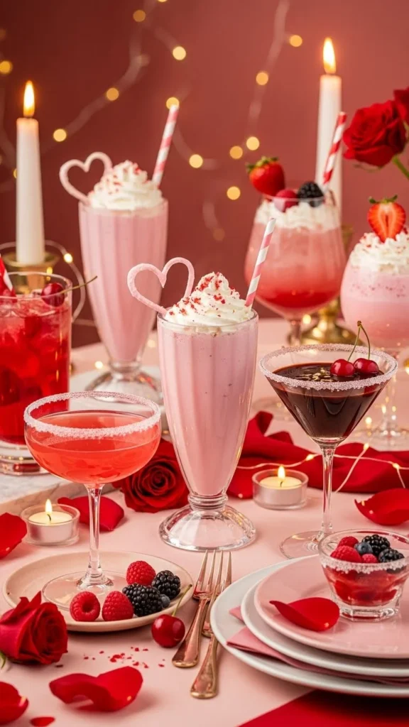 Valentine drinks can feel luxurious, romantic, and beautifully styled without alcohol. These mocktails focus on soft colors, berry and chocolate flavors, floral notes, and sparkling textures to create an evening that feels warm and intimate. Light the candles, choose your favorite glassware, and enjoy a sweet celebration together at home.
