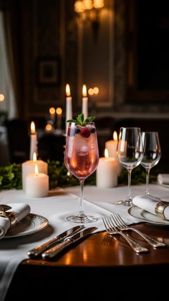 Pomegranate is a favorite in romantic drinks because the flavor is both tart and refreshing. This mocktail pairs the fruit with gentle fizz for a refined evening sip.