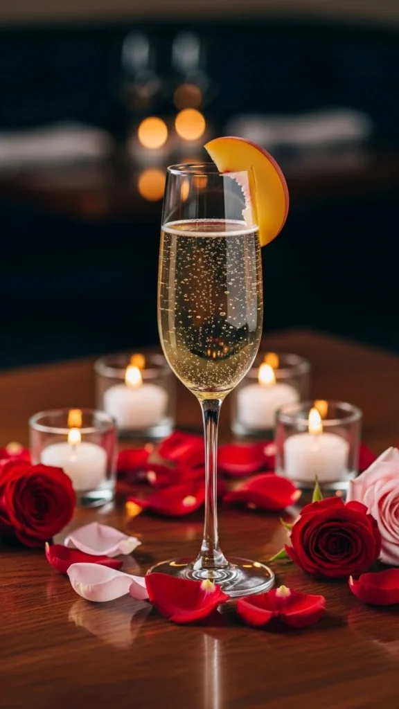 Peach sparkling drinks are often included in romantic menus because the flavor is gentle, fruity, and soft. This mocktail keeps the sweetness light and elegant.