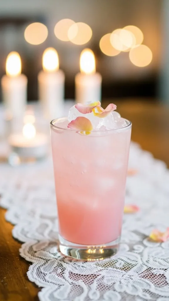 Serve in a tall clear glass so the soft blush color shows through. A few rose petals create a delicate romantic touch.