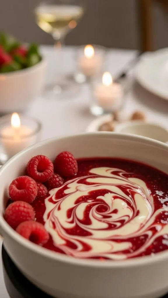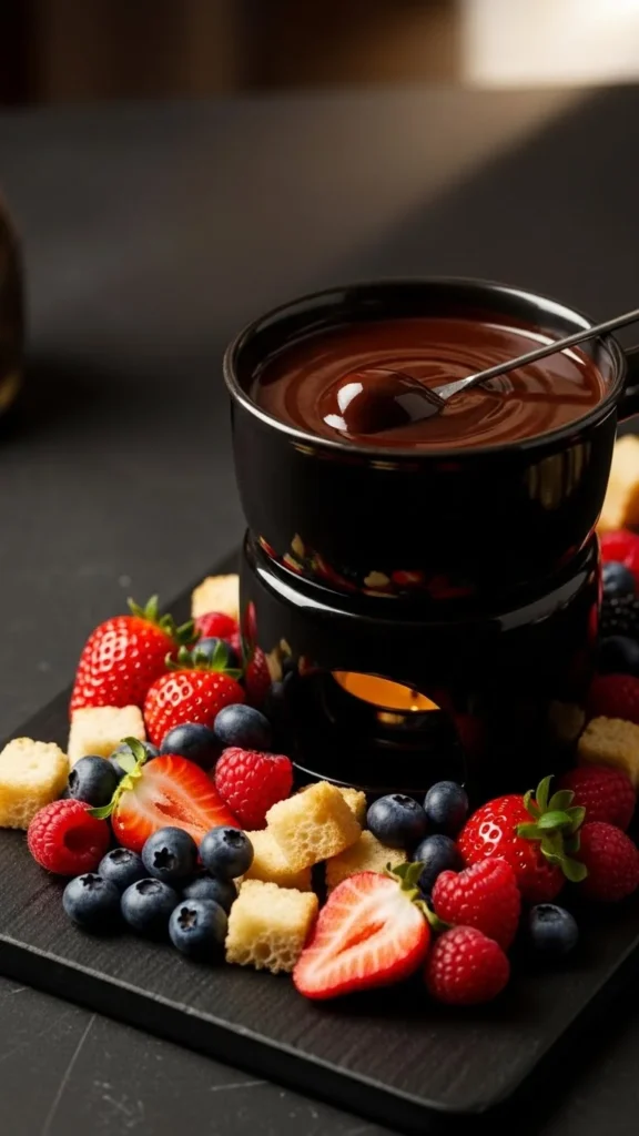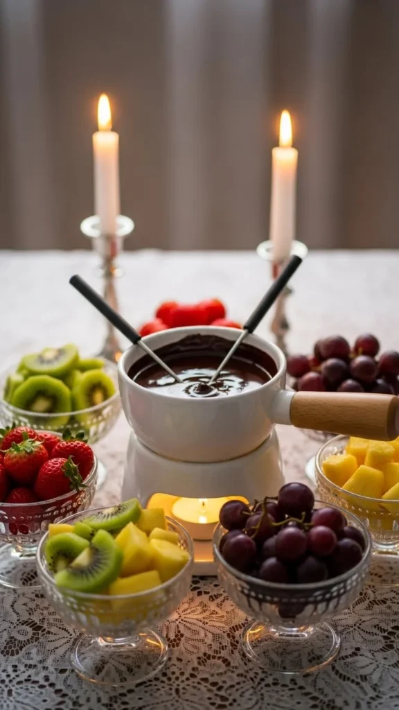 Serve with chilled fruit for contrast against the warm chocolate. Keep the presentation bright and inviting. This fondue feels perfect for couples who prefer lighter desserts.