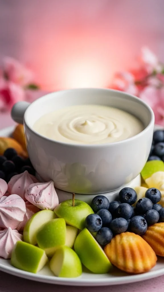 Serve with a variety of textures like bread, apples, and roasted vegetables. Place the pot in the center of the table so dipping feels interactive and relaxed. Keep the portions small so the experience stays light and romantic.