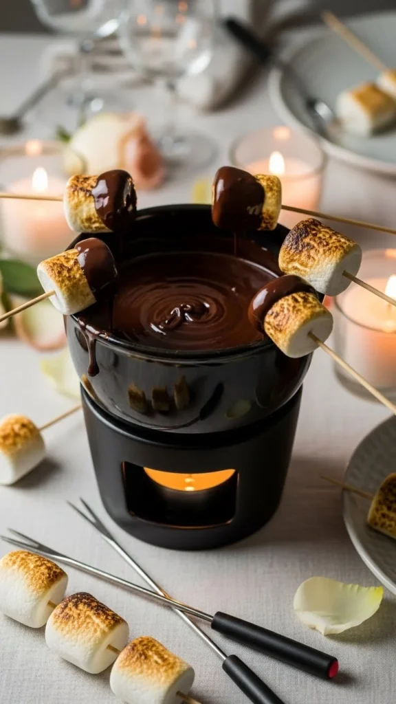 This fondue mixes melted chocolate with marshmallows to create a thicker, sweeter dip with a hint of toasted flavor. It feels nostalgic and comforting. Couples who enjoy campfire style treats will love this version.